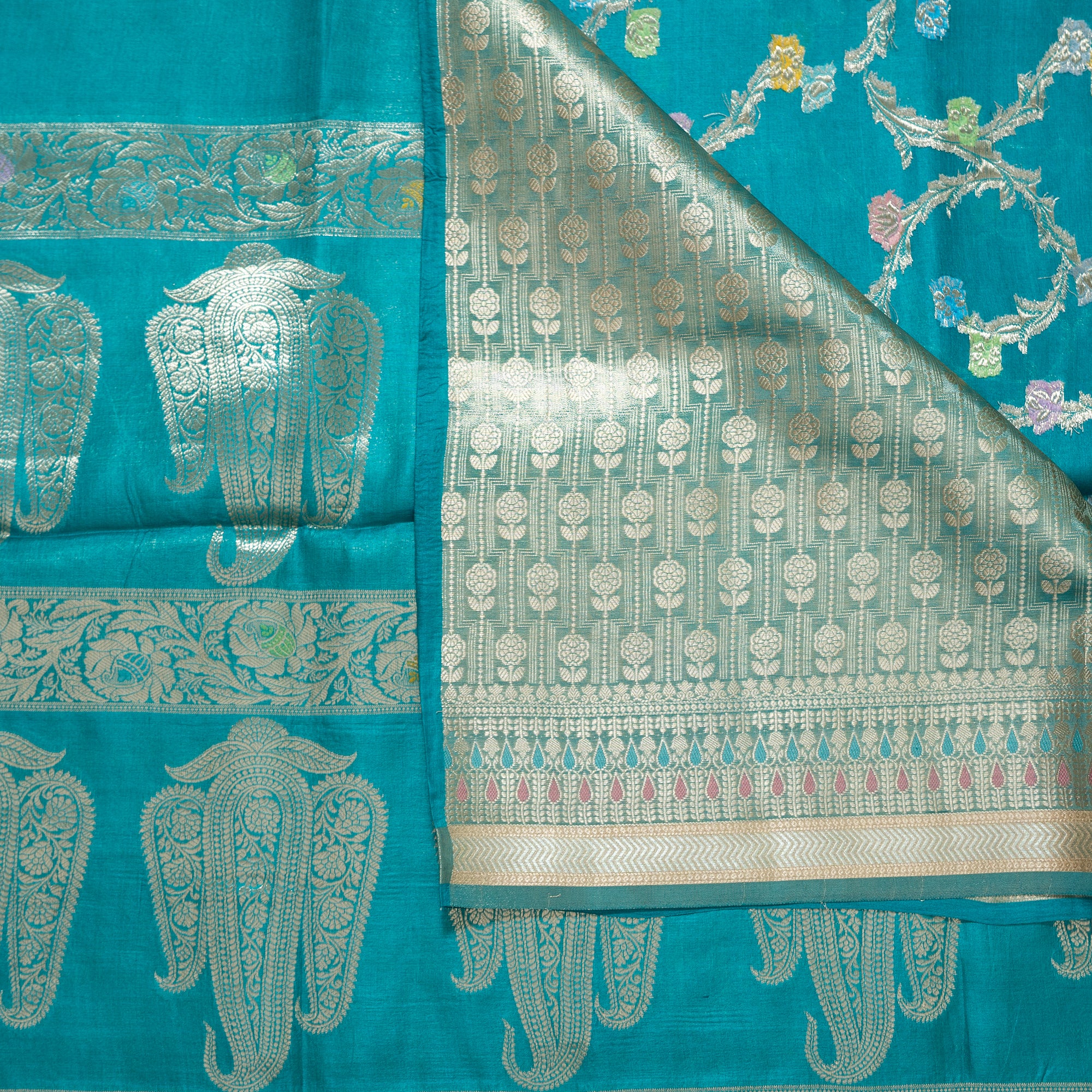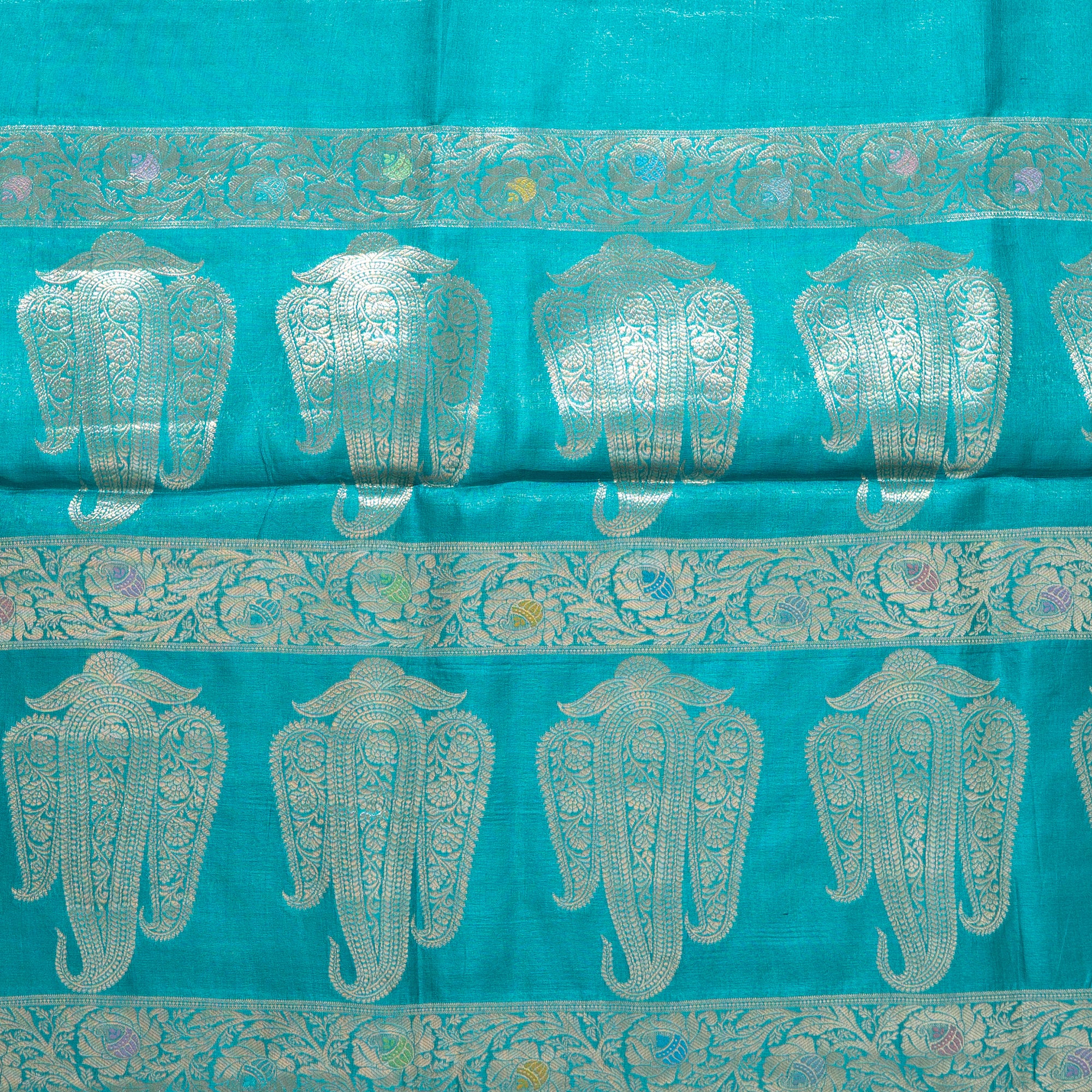 Turquoise Blue Pure Kosa Silk Saree with Golden Zari Weaving with blouse (Silk Mark provided)