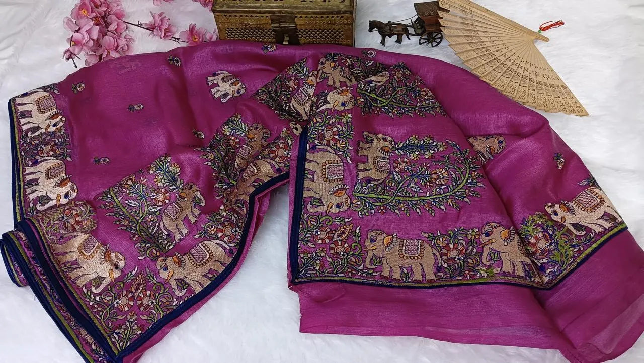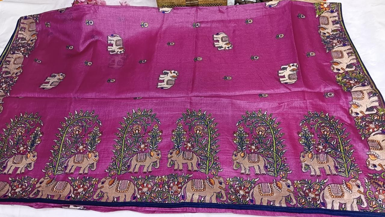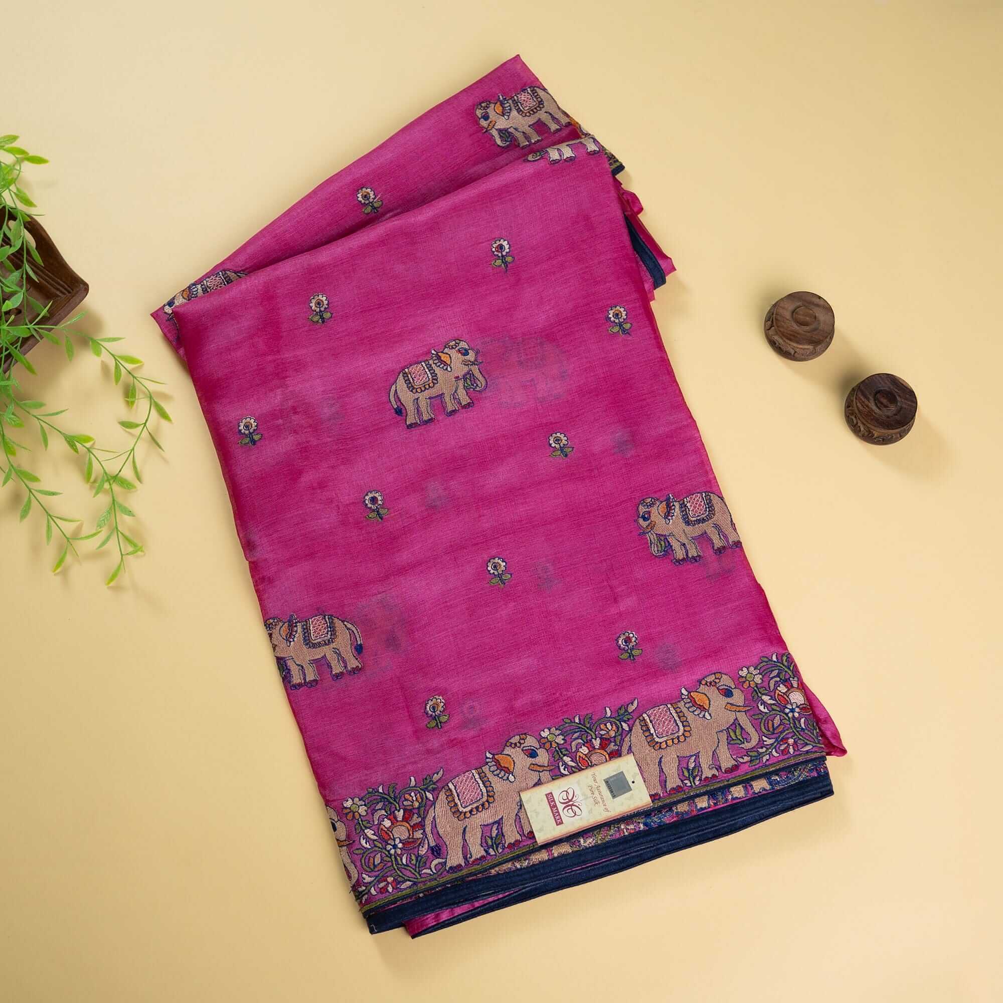 Magenta Kosa Silk Saree With Elephant Motif Border (Silk Mark Certified)