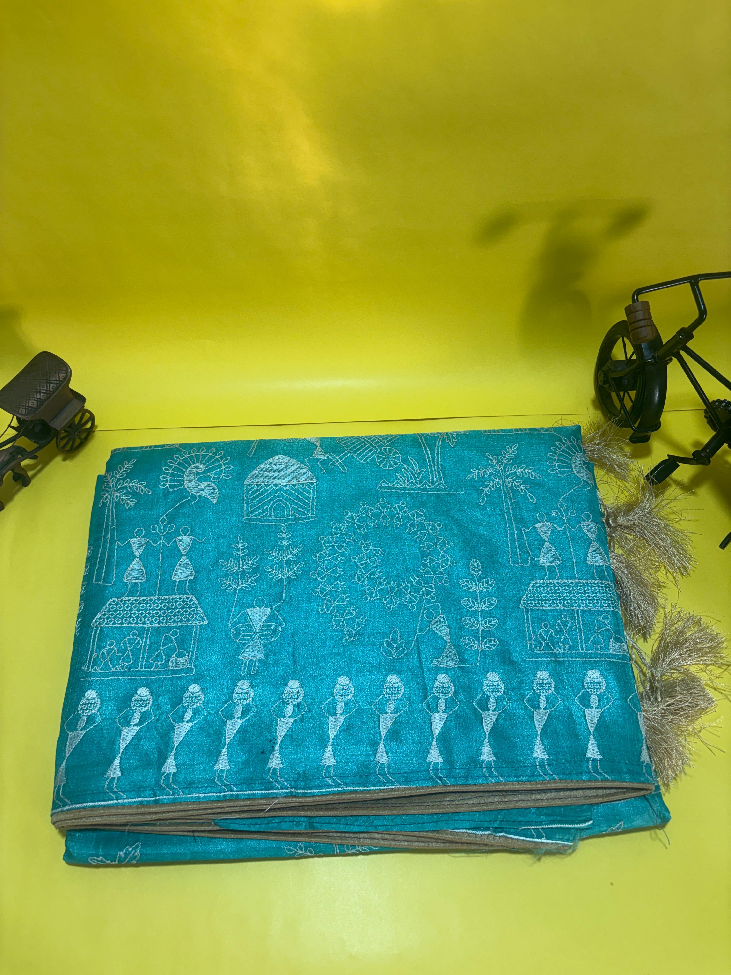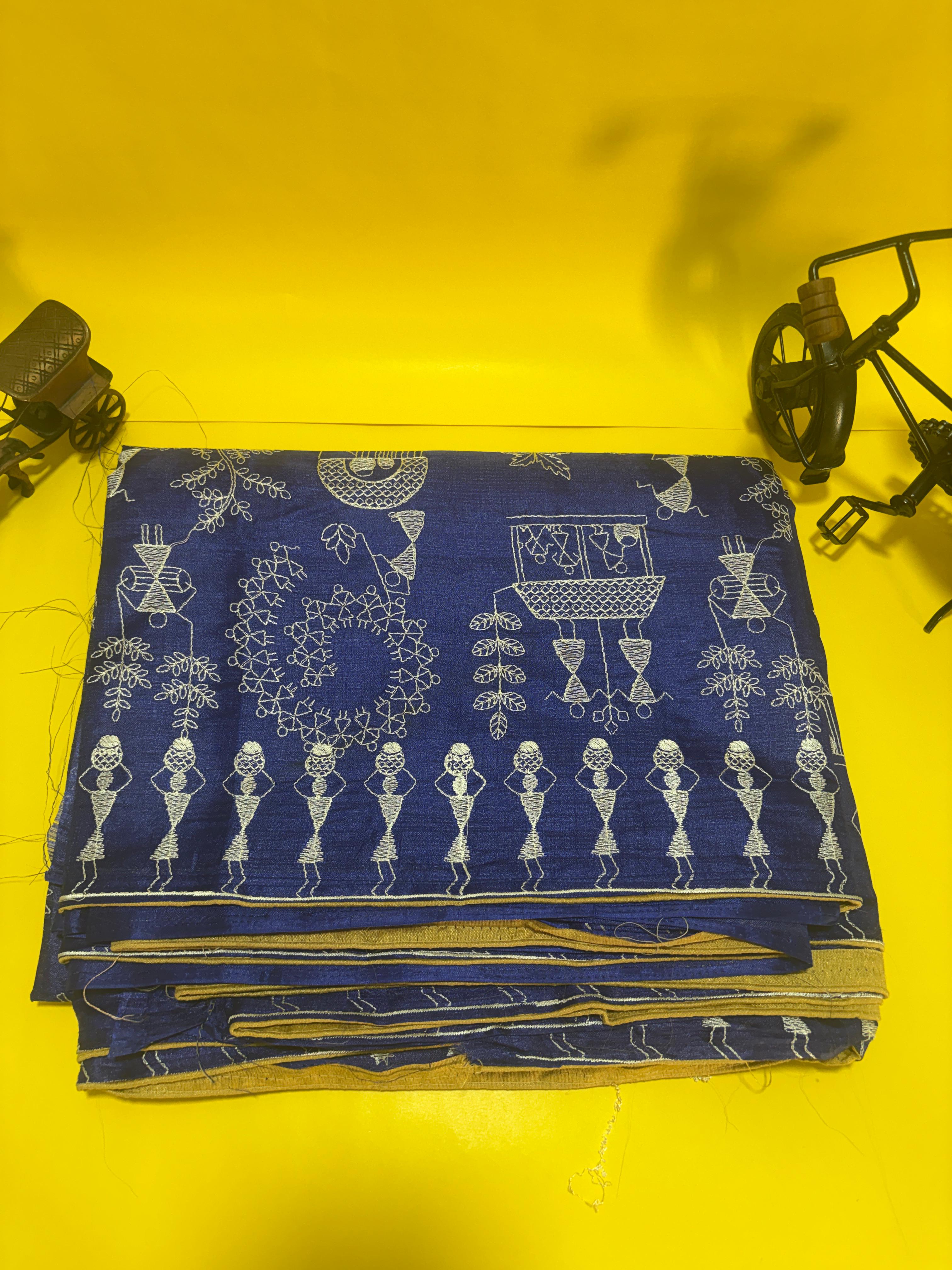 Crafted from authentic Kosa silk, the saree has a naturally airy texture with a soft sheen that drapes beautifully and feels light on the body. Finished with a thoughtfully detailed border and paired with a matching blouse, this Kosa Silk & South Silk Thread Blend artisanal storytelling with timeless sophistication.