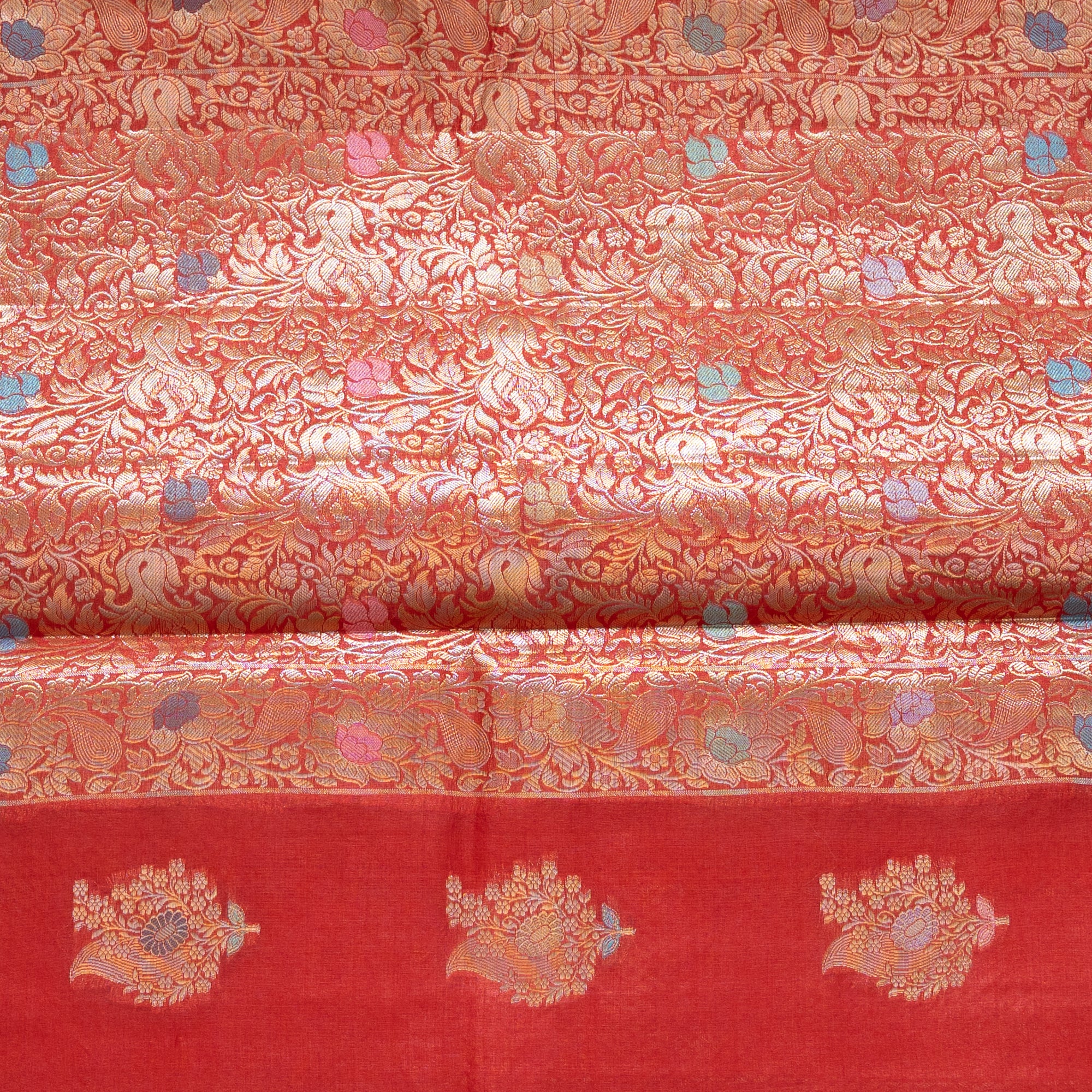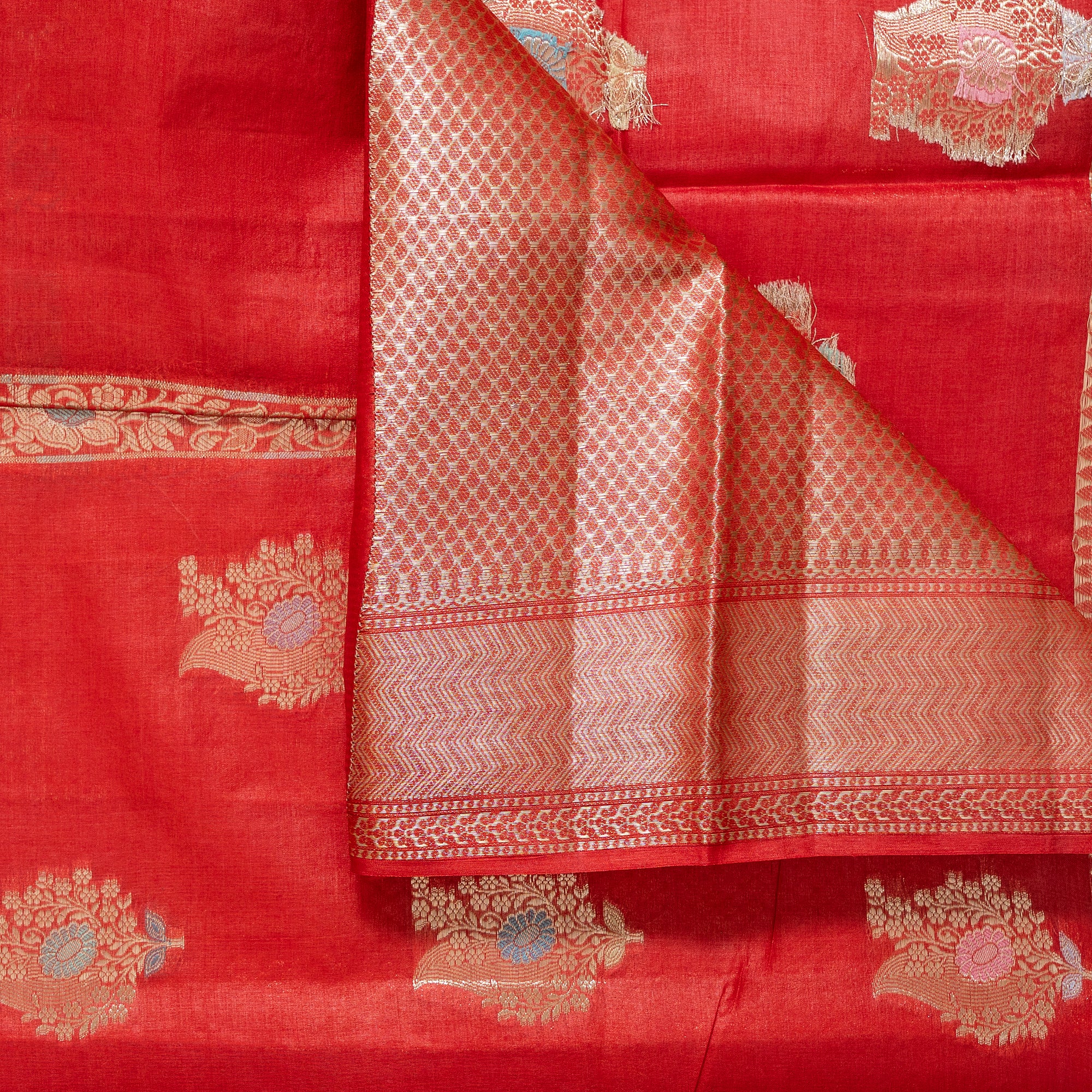 Red Pure Kosa Silk Saree with Golden Zari Weaving with blouse (Silk Mark provided)