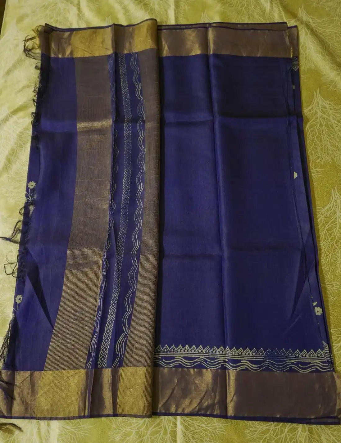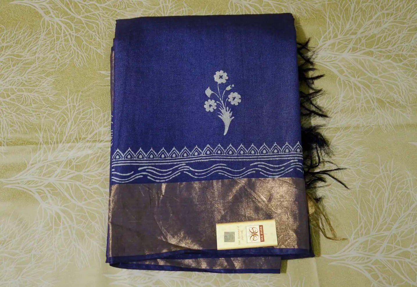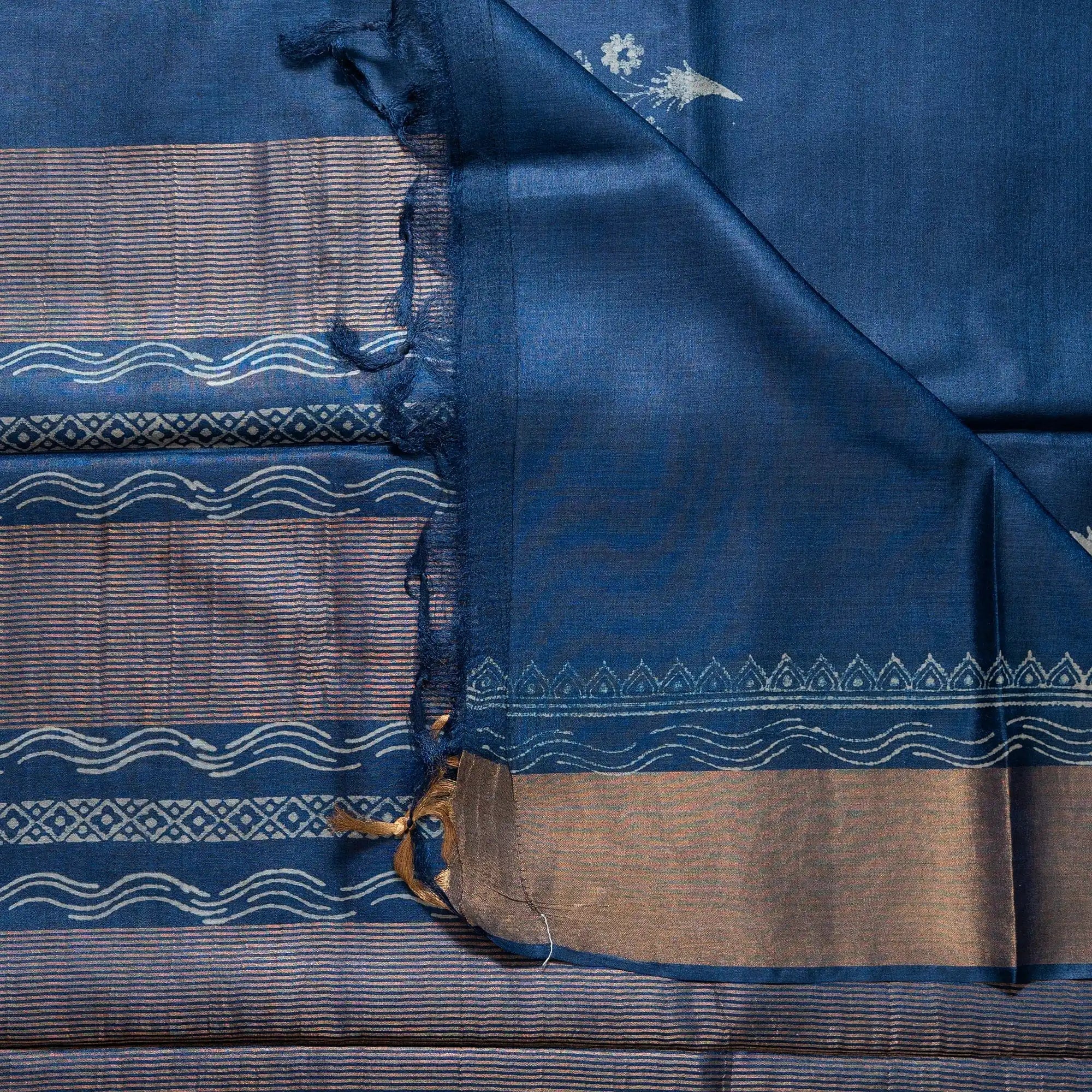 Royal Blue Pure Kosa Silk Block Printed Saree with blouse (Silk Mark certified)