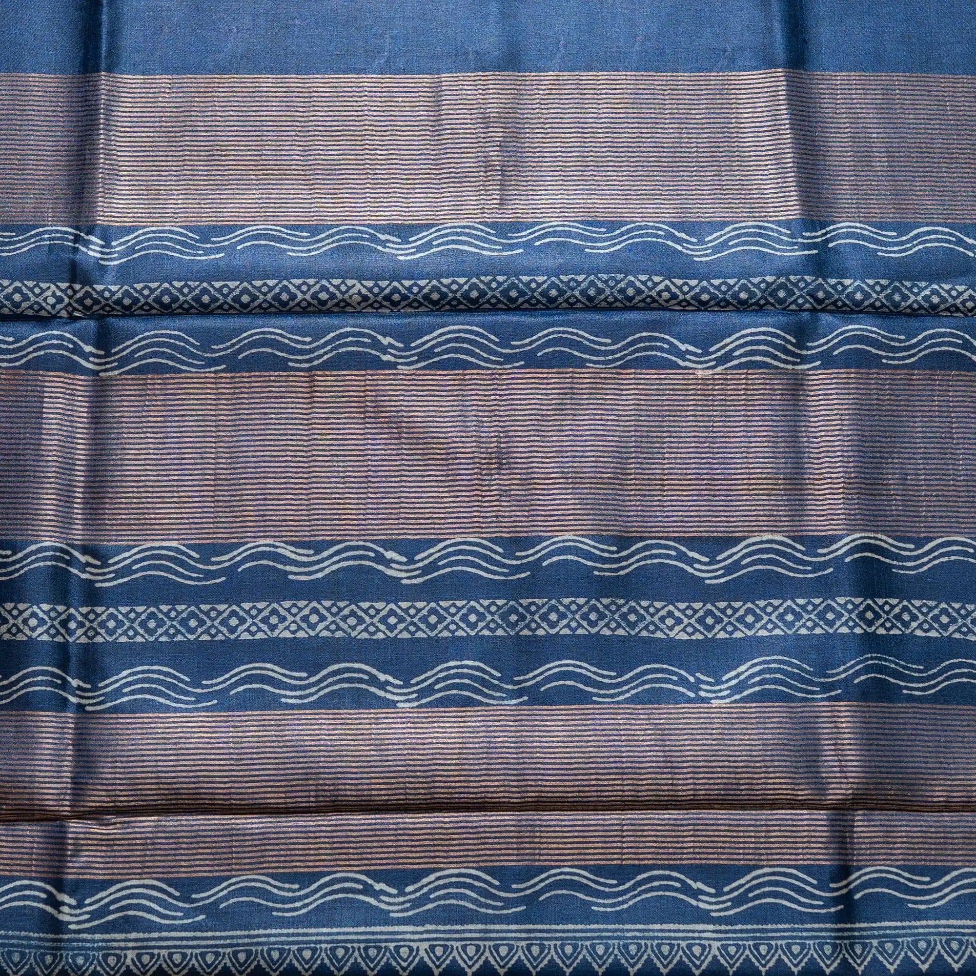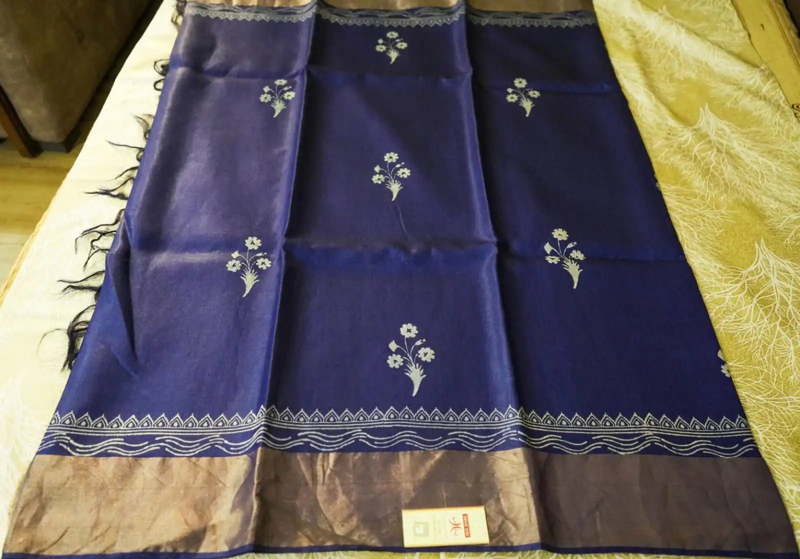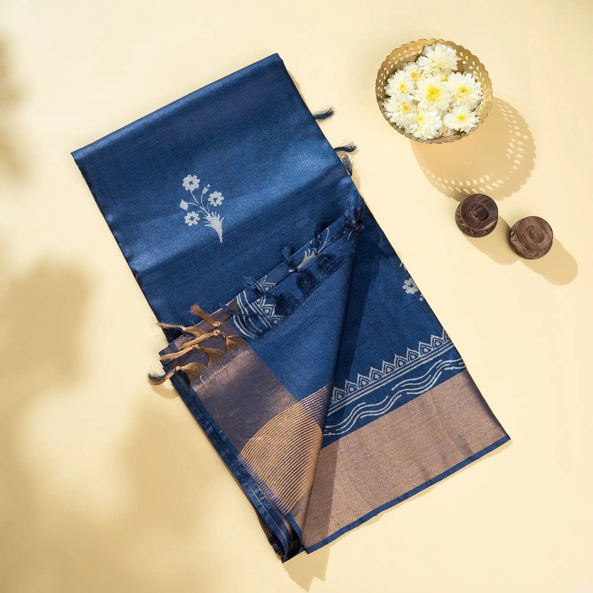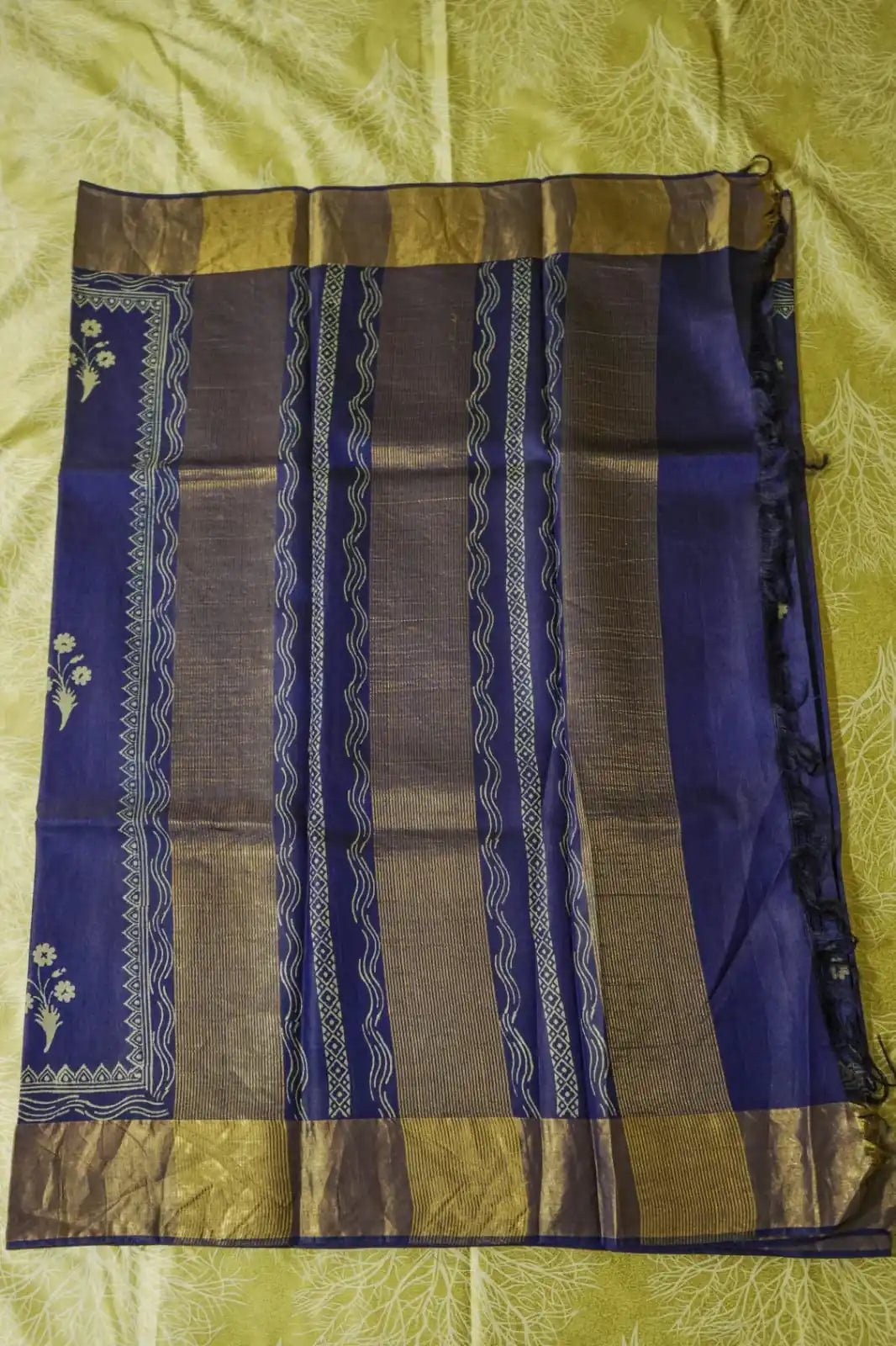 Royal Blue Pure Kosa Silk Block Printed Saree with blouse (Silk Mark certified)